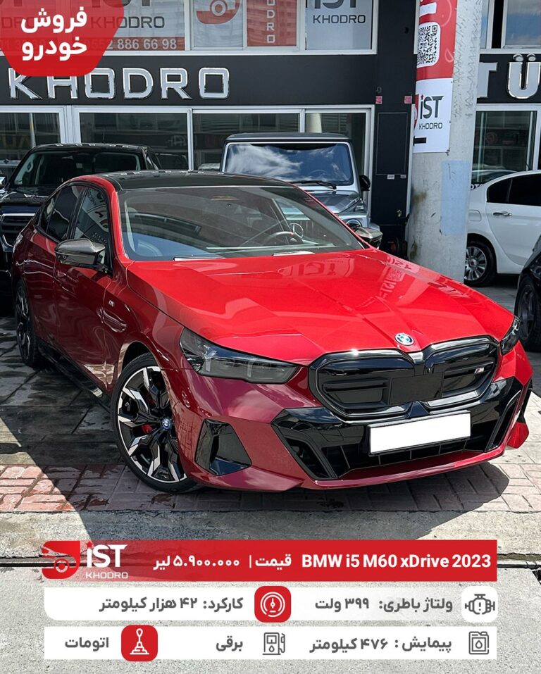 BMW i5 M60 xDrive یکی از مدلهای لوکس و پیشرفته این برند است که به دلیل ویژگیهای منحصر به فرد خود، طرفداران زیادی پیدا کرده است. این خودرو با سیستم رانش الکتریکی خود به راننده شتاب و قدرت بالا میدهد. طراحی خارجی آن نیز به روز و جذاب است. علاوه بر این، با قابلیتهای هوشمند و داخلی پیشرفته، i5 M60 یکی از گزینههای عالی برای طرفداران خودروهای برقی است.